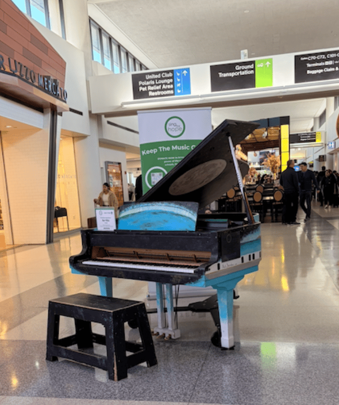 What I remember is the music. The soft echo of piano keys playing in the terminal. Not the usual boarding announcements. Not the rolling wheels of carry-ons.