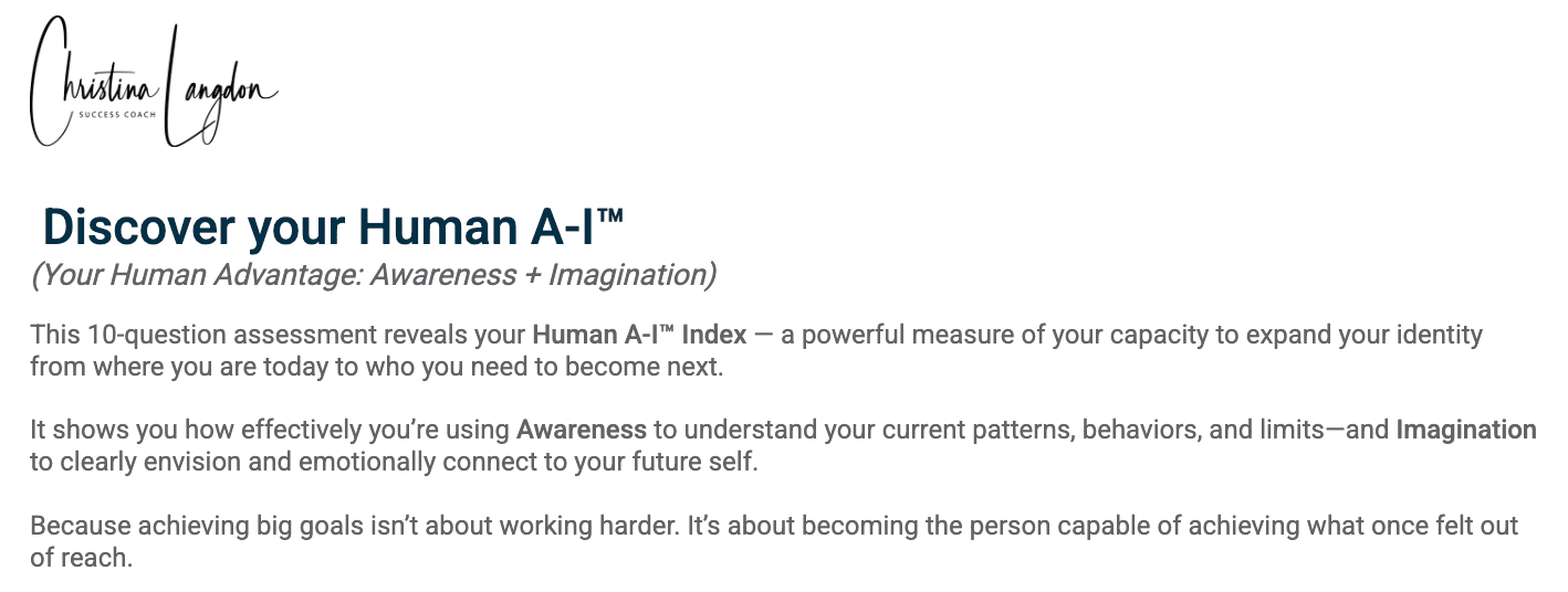 Take my 5-minute assessment that takes the temperature on your awareness and imagination. You'll get a short report on where you can focus to bring more into your life! Go HERE.